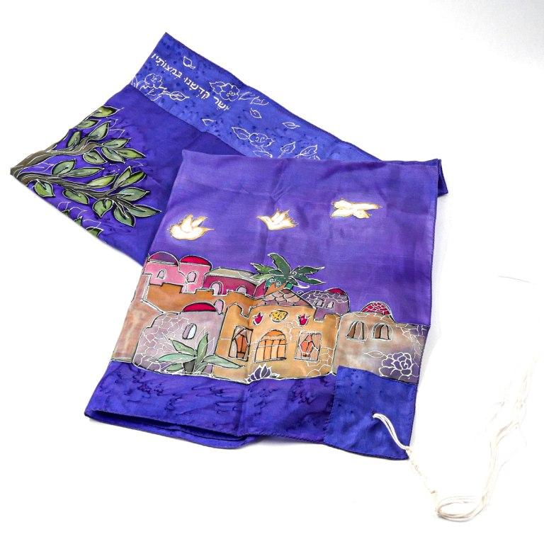 Gorgeous 100% silk tallit painted by hand by our elderly artisans.
