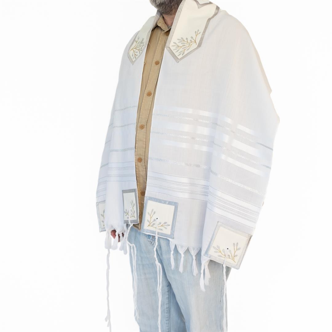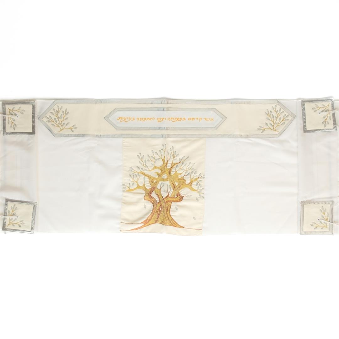 Embroidered Tree of Life Wool Tallit Set