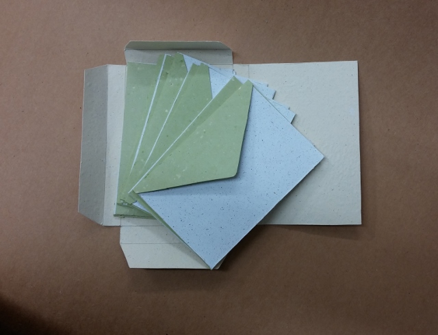 Pack of ten greeting cards and envelopes made of handmade recycled paper.